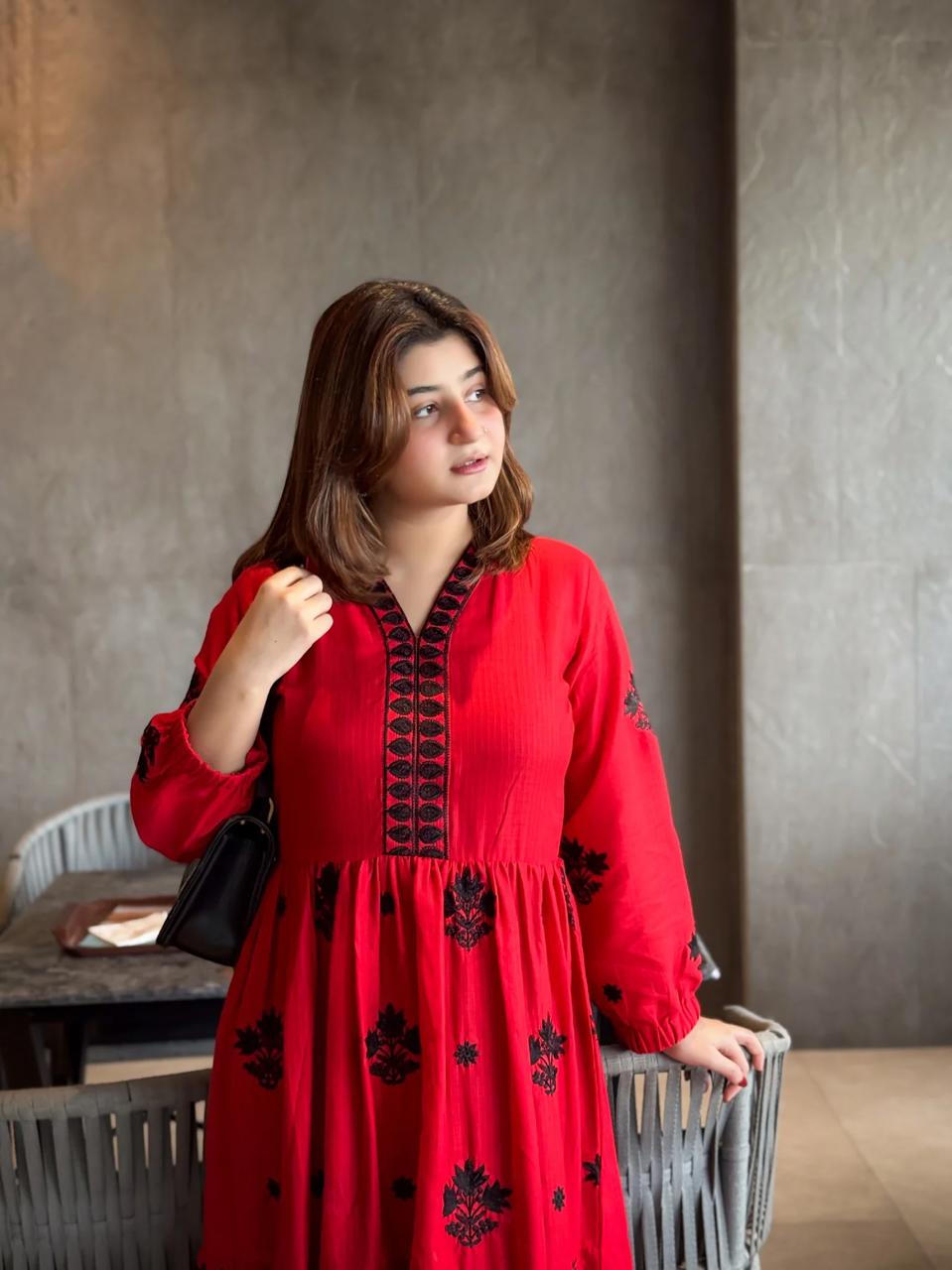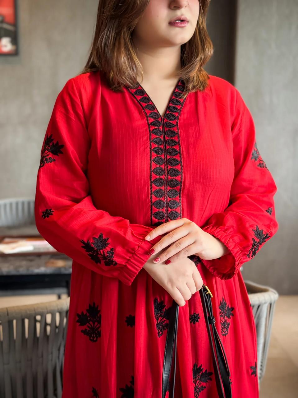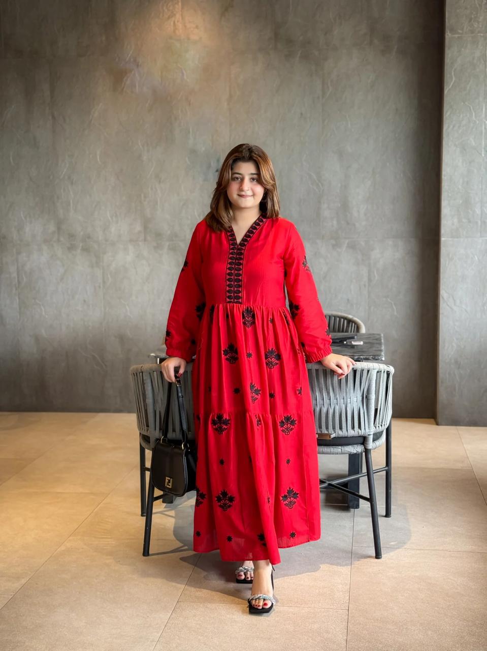 FULLY EMB MAXI WITH + PLAIN TROUSER