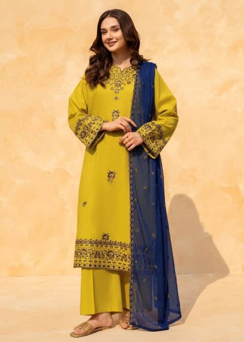 Step into elegance with this embroidered cotton kurta set, styled in a refreshing olive tone and paired with a flowy chiffon dupatta. Perfect for chic summer looks that blend comfort and grace. ✨