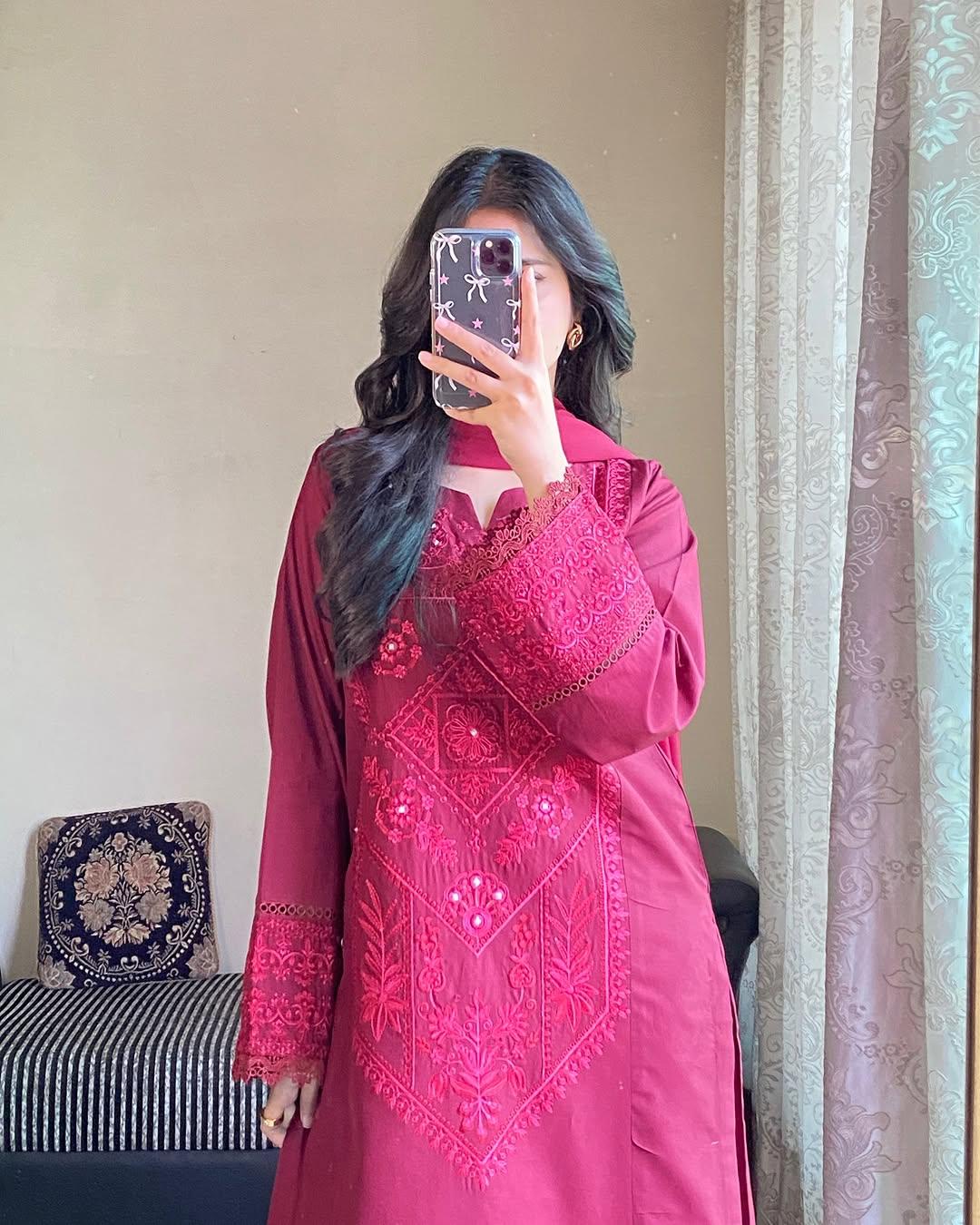 EMB SHIRT WITH LEASE WORK + PLAIN TROUSER + DUPPATA